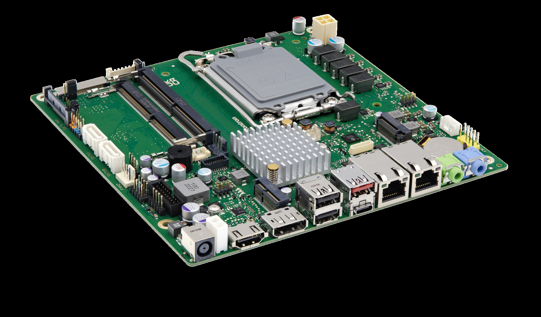 The industrial Motherboard K3831-H Thin mITX provides highest performance and functionality for demanding requirements on a small and ultra thin form factor. It supports the Intel® Core™ processors (12th/13th/14th Gen/Series 2) as well as the Intel® Pentium® & Intel® Celeron® processor series. Despite the limited space on this motherboard, the K3831-H is equipped with connectors for HDMI V2.0b, Display Port V1.4a, Dual Channel LVDS, Dual GbE LAN and 9x USB (2.0, 3.2 Gen1 and 3.2 Gen2).