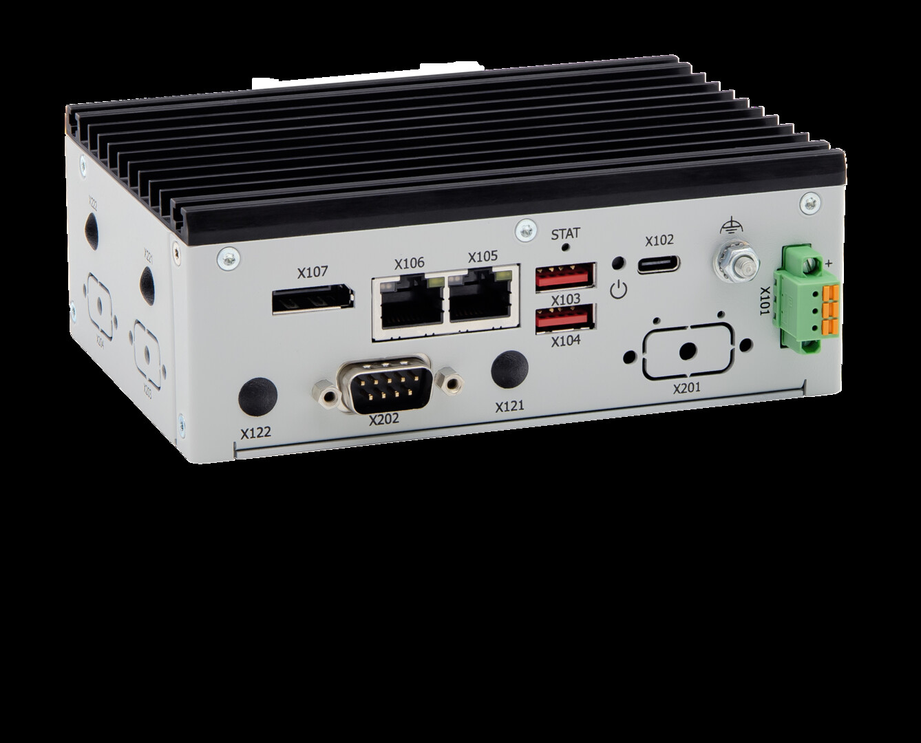 The special feature of this industrial PC is the so called “IO door” on the left-hand side of the system, which can be used to offer a variety of additional interfaces. For example, serial or LAN ports, fieldbuses or even digital IOs can be added as required and made available to the customer.