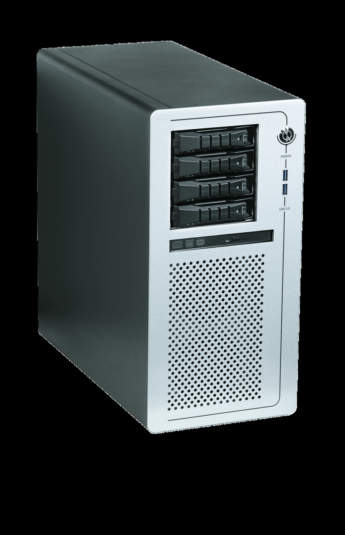 The KWS 3000-ADL workstation can be individually configured; several front versions are available, up to four 3.5-inch drive bays can be equipped with either removable drives (hot swappable) or internal drives, and a Slim DVD can also be operated. In addition to the two USB 3.0 ports on the front, there are six more USB 3.2 ports as well as a USB C port on the back rear side. Three GbE ports are available for connectivity, two of which can operate at up to 2.5 Gb/sec. The workstation also has four DisplayPorts DPP1.4 and a COM RS232 interface; three additional internal COM interfaces can be installed at the rear.