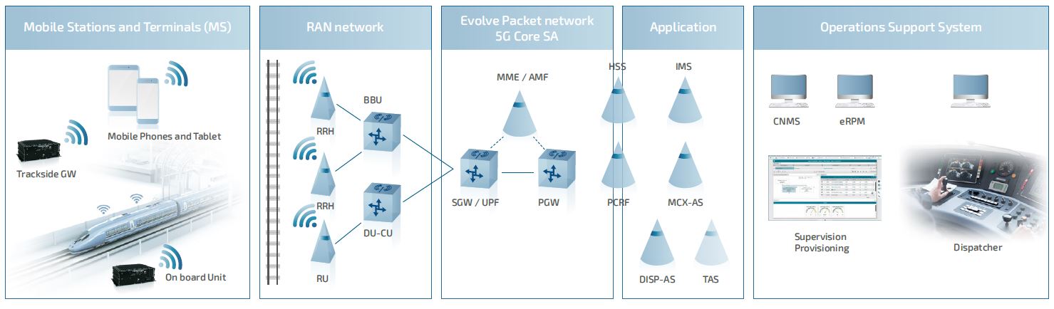 The 4G/5G Private Network Solution allows a fast deployment of a Mission Critical network for small to medium coverage areas (ex: shunting area, Level crossing, airport, port, construction site, and many more) to replace, modernize or interconnect to an existing PMR or TETRA network.