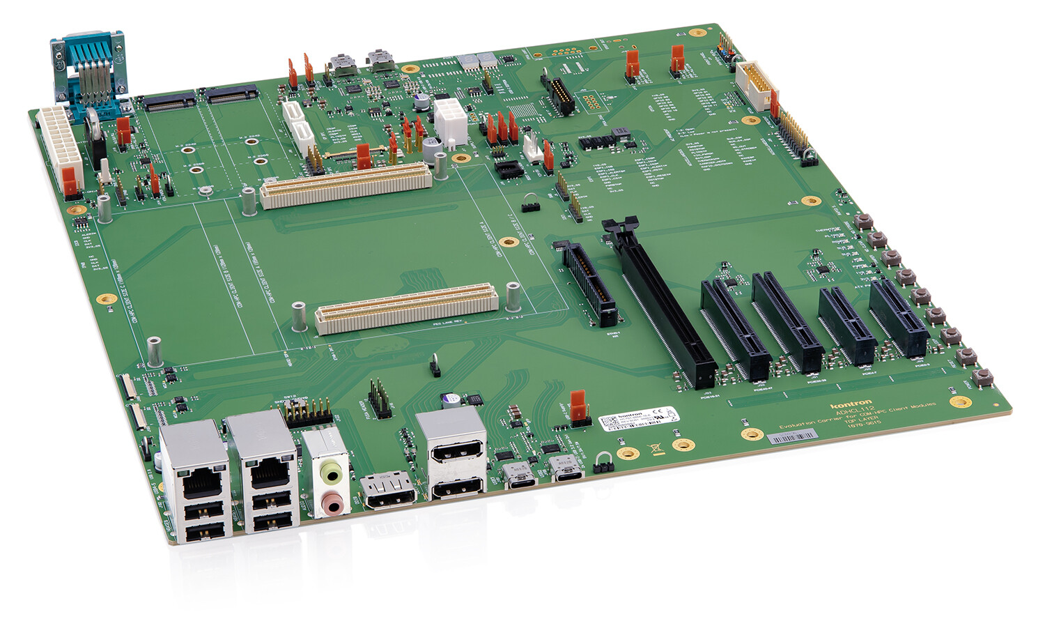 The Kontron COMh-Client Eval Carrier offers a complete set of standard interfaces, such as USB, SATA and DisplayPort, as well as many PCIe interfaces; thus supporting and optimizing the design-in phase of COMh-ccAS, COMh-caAP and COMh-caRP
